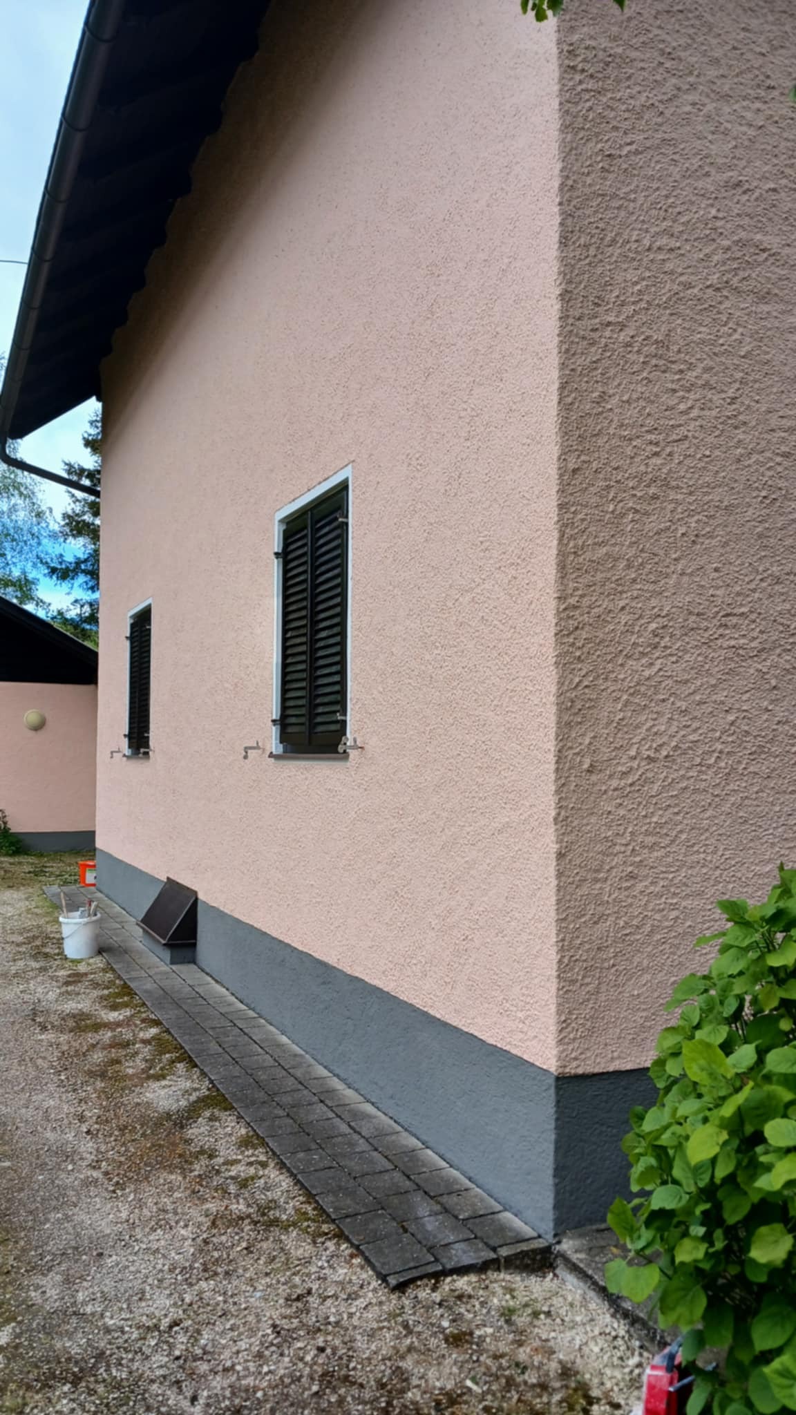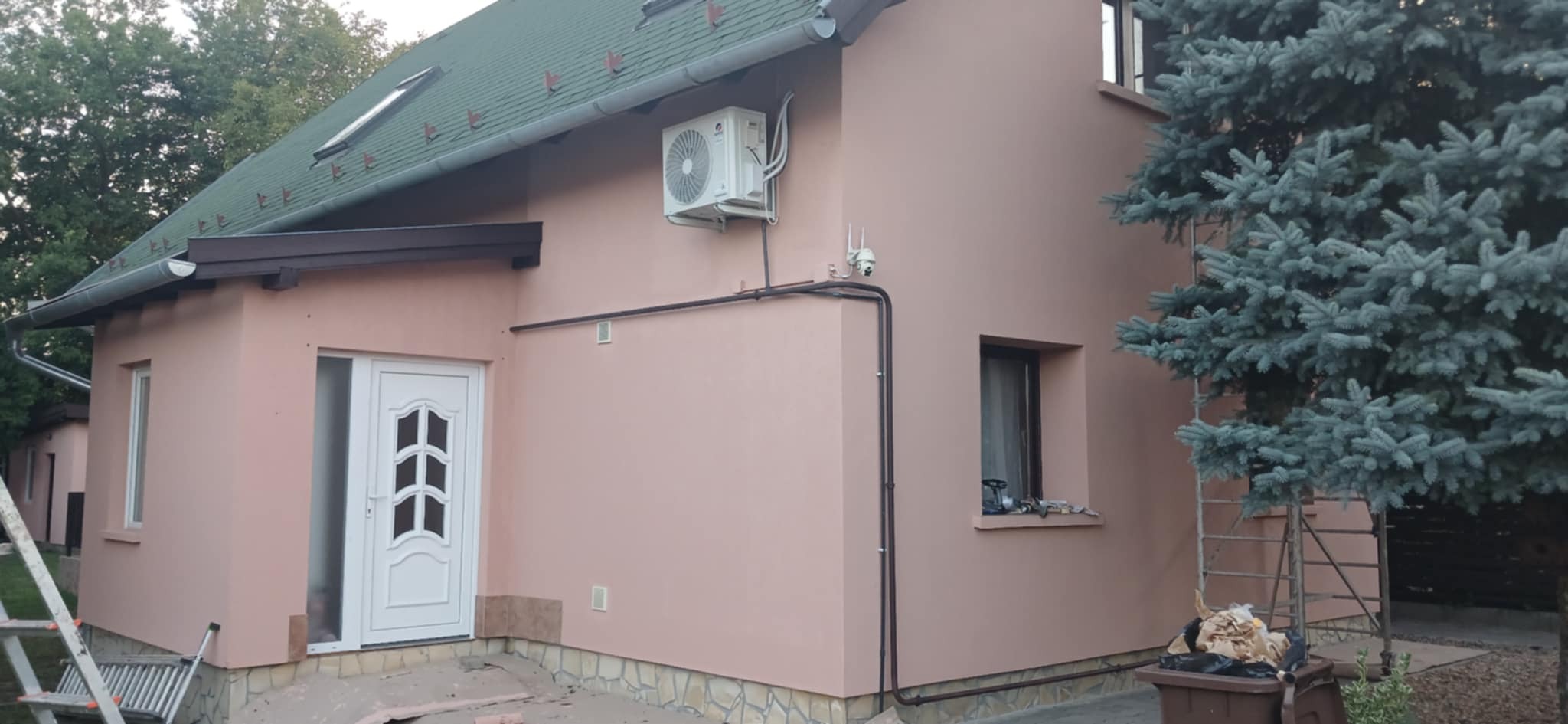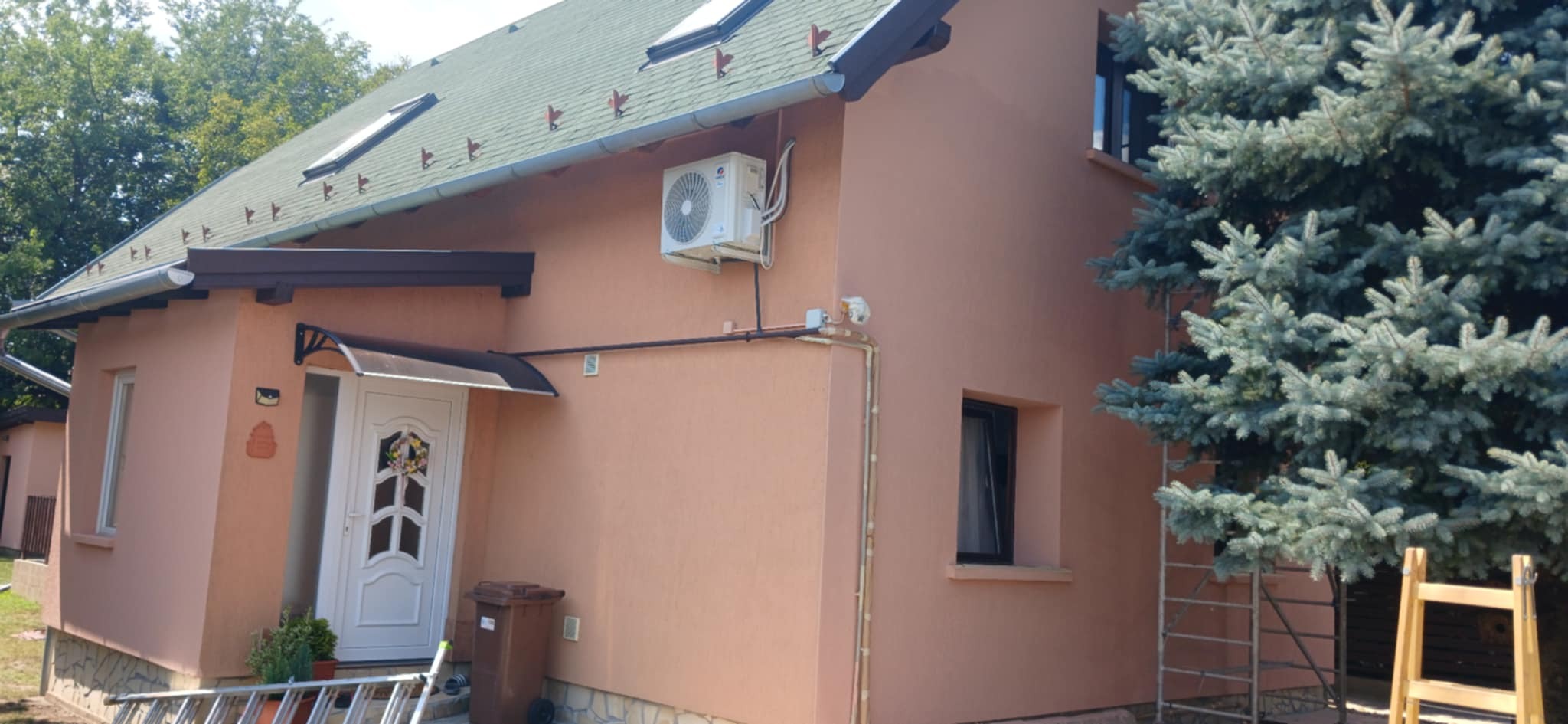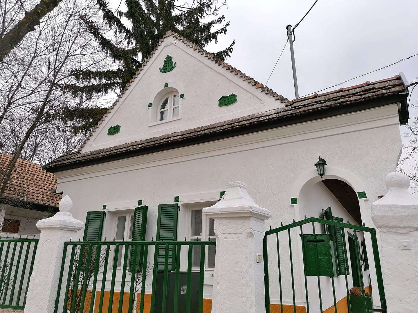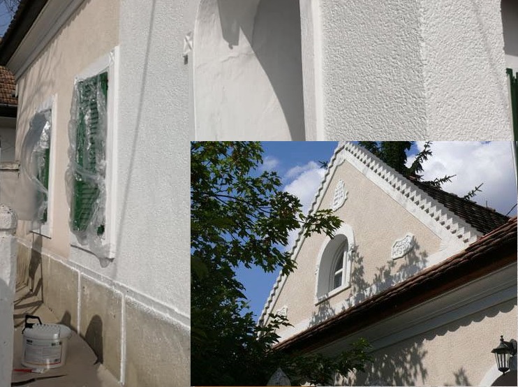 A felújítás során a következő munkafázisokat végeztük el: mészfestés, lábazat festés, mázolás, lazúrozás.