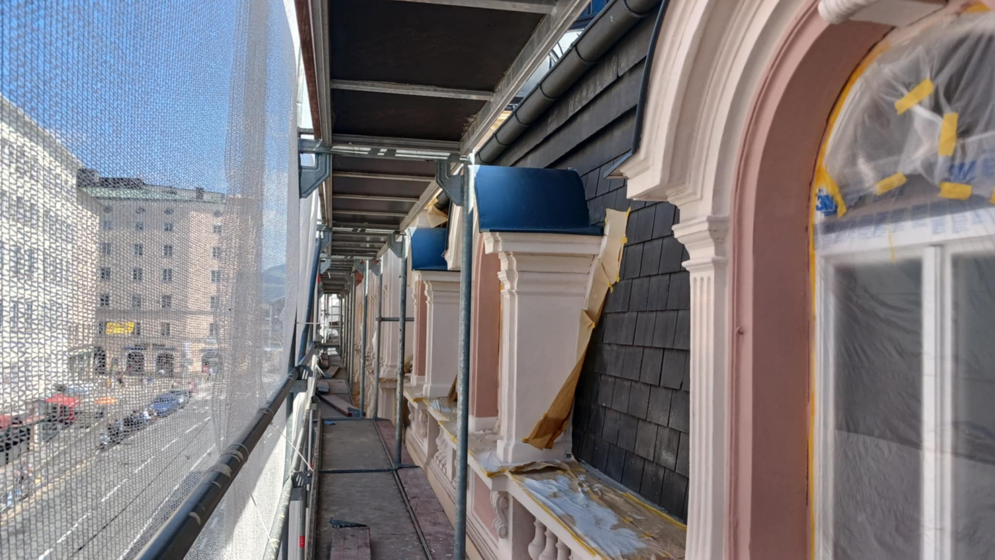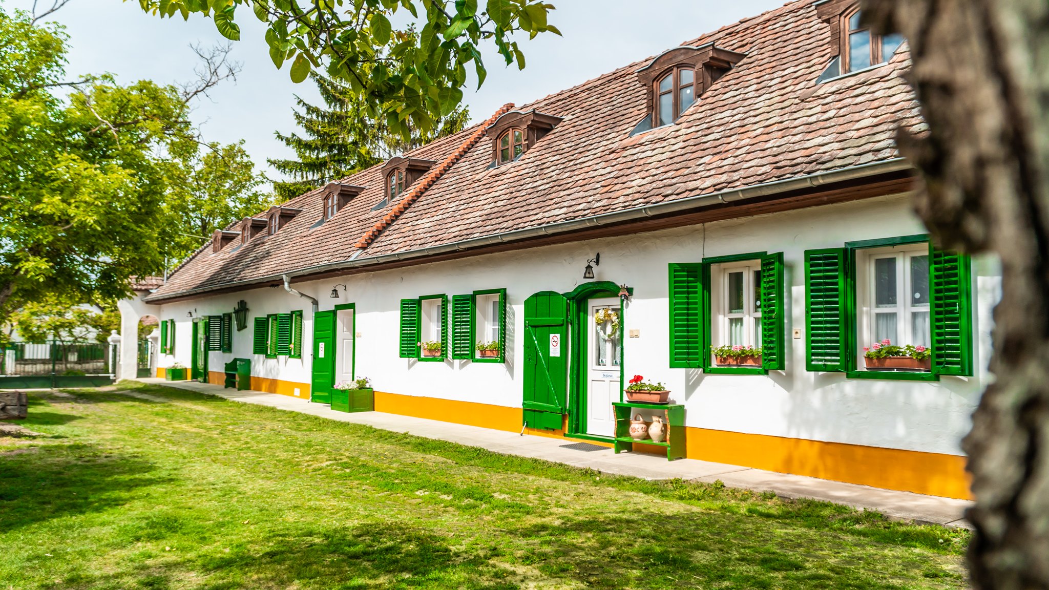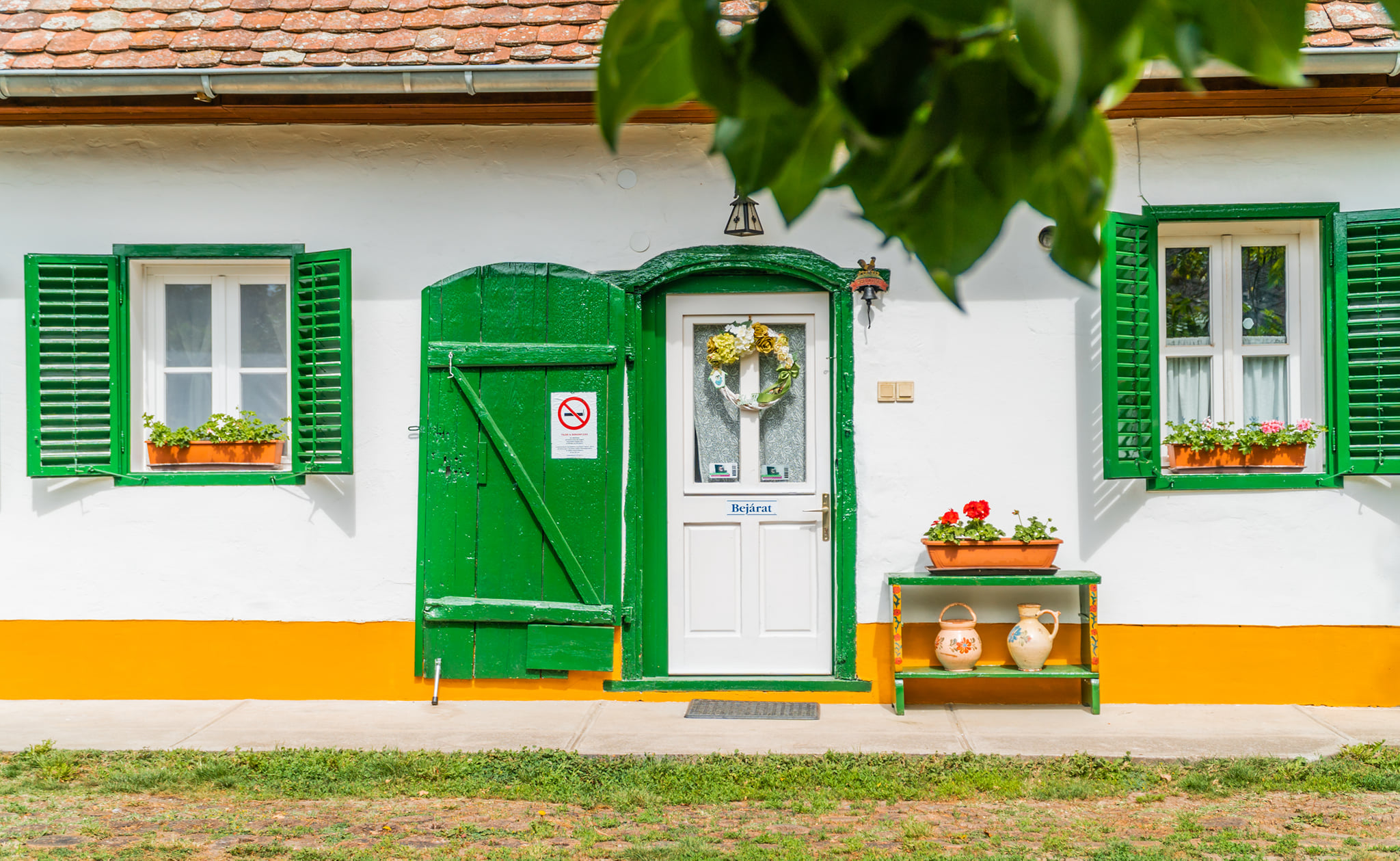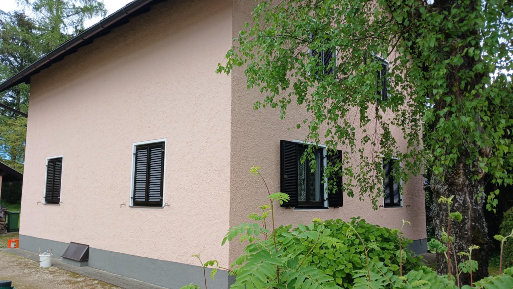 A felújítás során a következő munkafázisokat végeztük el: mészfestés, lábazat festés, mázolás, lazúrozás.